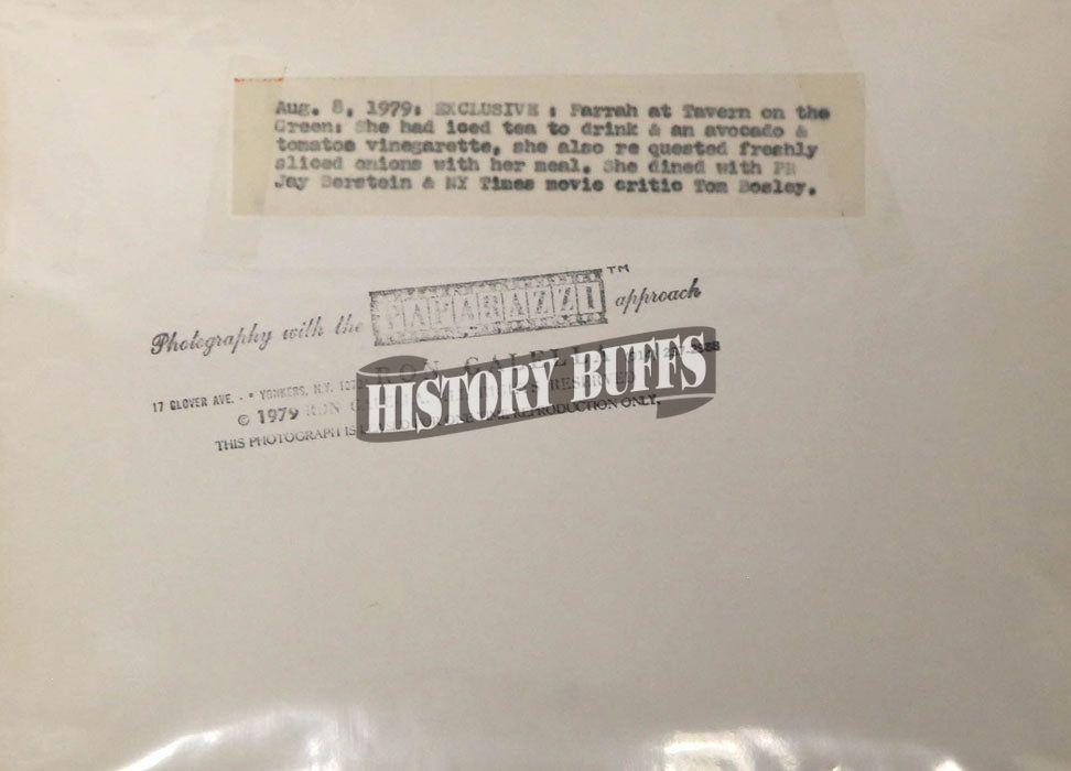 Farrah at Tavern on the Green: she had iced tea to drink as an advocate to tomatoe vinaigrette, she also frequently filled onion with her meal. She dined with Phil Jay Bernstein a NY Times movie critic from Cozley.
